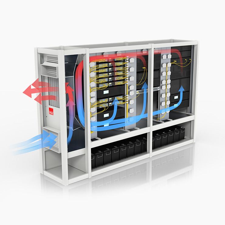 Nur das Abkühlen des Kältemittels, beziehungsweise die Wärmeübertragung an die Außenluft, erfolgt über ein luft- oder wassergekühltes System. Bei Systemen mit zusätzlicher Freier Kühlung (free cooling) kann bei niedrigen Außentemperaturen auf die Kompressor-Kühlung teilweise oder ganz verzichtet werden. Anstatt dessen wird die Wärme über integrierte Freikühlwärmetauscher an die Außenluft abgegeben.